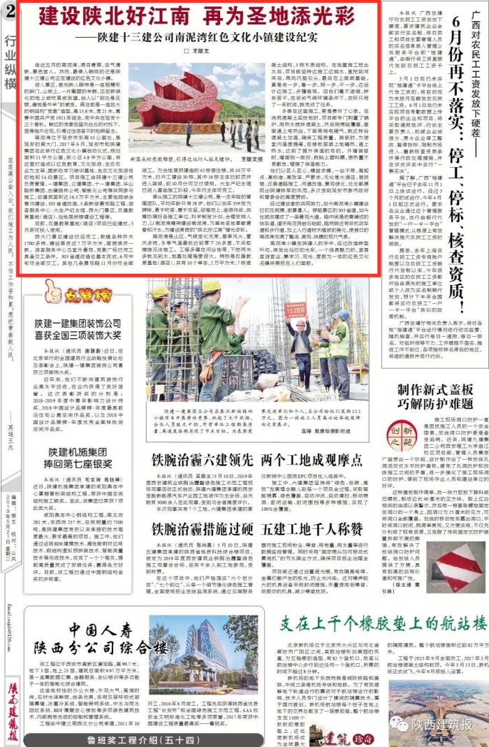 近日,陜建十三建公司負責管理的南泥灣紅色文化小鎮(zhèn)項目登上《陜西建筑報》,宣傳分享了南泥灣紅色文化小鎮(zhèn)建設(shè)的施工進展情況及十三建公司在建設(shè)中所發(fā)揮的管理作用。