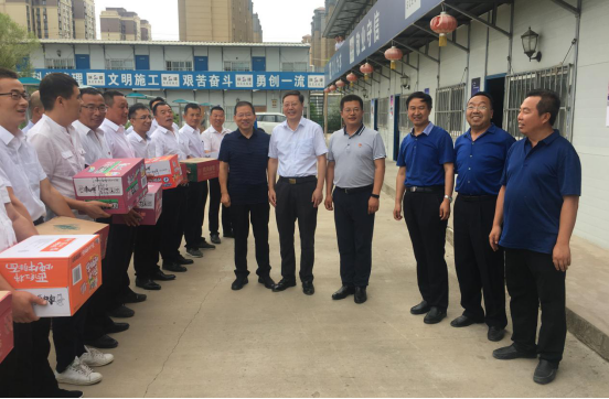 8月9日上午,延安大學(xué)校長張金鎖,副校長楊偉宏,校辦主任劉述進(jìn)、工會主席白澤生一行到延安大學(xué)新校區(qū)項目慰問一線職工,陜建十三公司董事長、總經(jīng)理卜國平一同慰問,延大校辦、工會及新校區(qū)辦公室相關(guān)負(fù)責(zé)人參加慰問活動。
