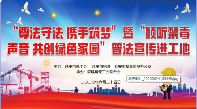 在第33個國際禁毒日來臨之際,為全面貫徹落實習近平新時代中國特色社會主義思想和習近平總書記關于禁毒工作重要指示精神,切實提高農民工法律意識和禁毒意識,6月24日,由延安市總工會、市婦聯(lián)、市禁毒委員辦公室主辦,陜建延安工會聯(lián)合會承辦的“尊法守法 攜手筑夢”暨“傾聽禁毒聲音 共創(chuàng)綠色家園”普法宣傳教育活動在陜建十三建公司延安市新區(qū)信天游文創(chuàng)餐飲街項目舉行。