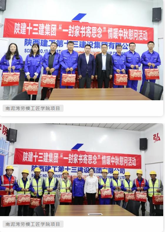 在中秋佳節(jié)來臨之際,9月16日至17日,陜建十三建集團(tuán)黨委、工會分別赴金鴻·行知坊項目、伴山樾谷·芳菲里項目、南泥灣勞模工匠學(xué)院項目施工一線慰問項目管理人員和廣大農(nóng)民工朋友,并為他們送去了月餅及節(jié)日的祝福。